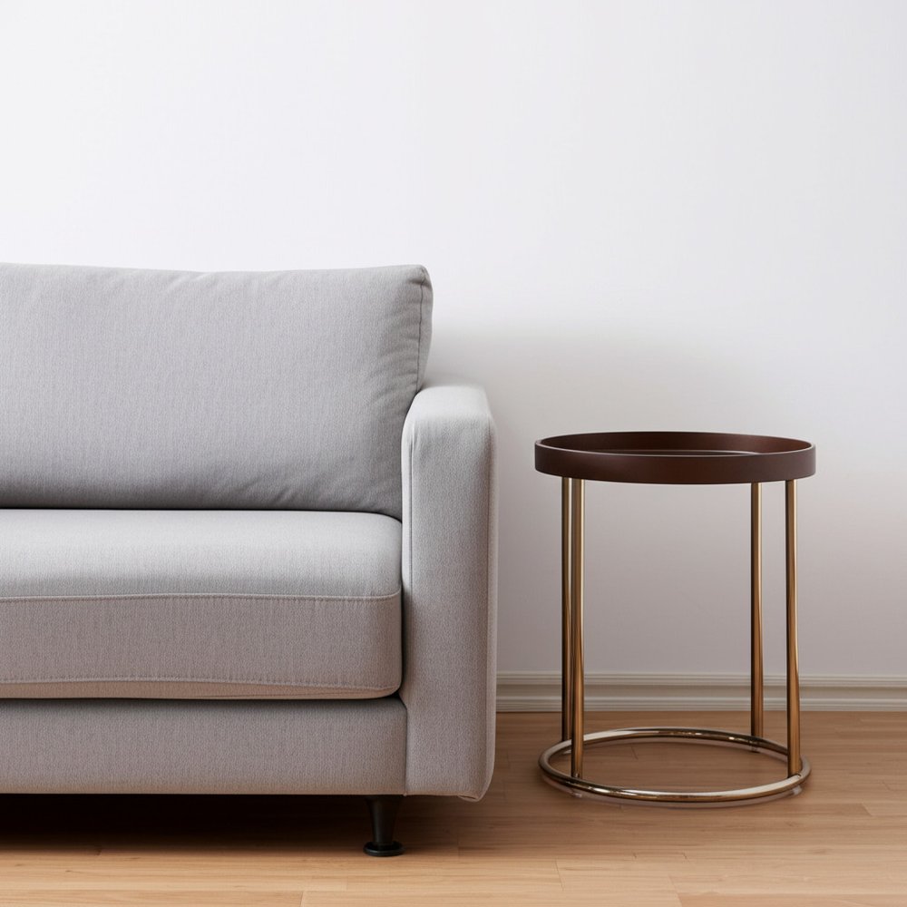 Optimize your space and add some charm to your room with the 22-inch copper and brown round end table. Offering a nice color combination, the top of this manufactured wood table is brown, while the base compliments it nicely in copper. Side tables are a great way to flank your sofa, use as an accent next to your favorite chair, or can even be used bedside. You can also use it as an entryway table to hold your keys. 21.75-inch H x 18.5-inch W x 18.5-inch D