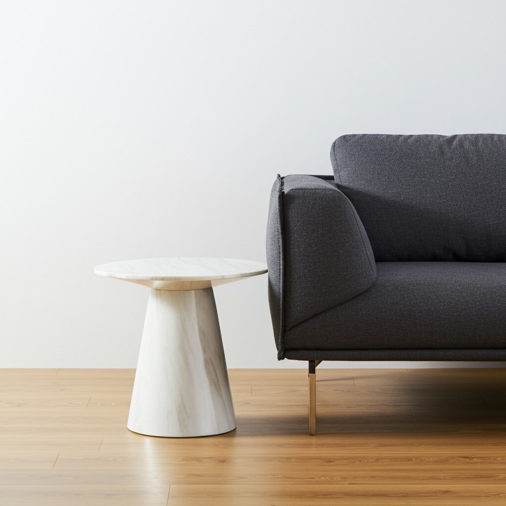 Show off your exquisite taste with this 22-inch gold and white genuine marble round end table. The gold coloration of the high quality stainless steel base marries nicely with the white genuine marble top. An ideal location for placing your snacks and drinks, and a place to keep your lamp, frames, or other accessories. This versatile table is a great accent for most any room. 21.9-inch H x 23.7-inch W x 23.7-inch D
