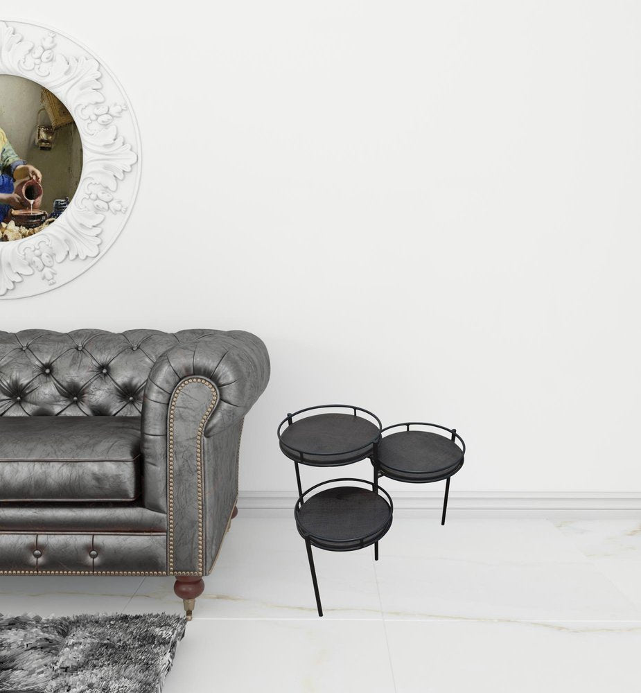 23" Black Solid Wood And Iron Round End Table