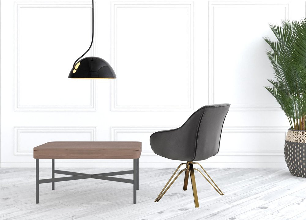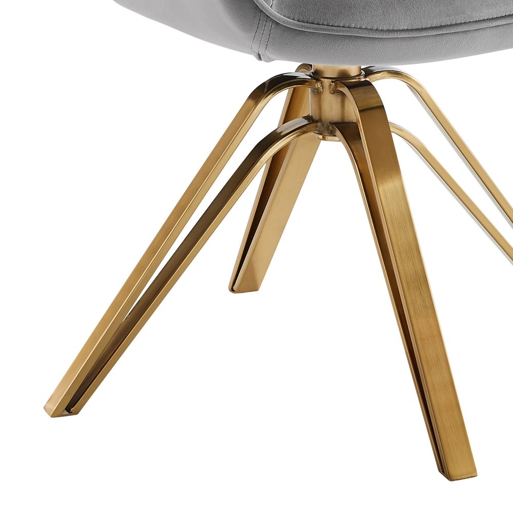Add an air of fashion to your room and rejuvenate the space with this 23" gray velvet and gold swivel arm chair. Built to last this arm chair is finished in solid gray velvet to give your room a great update. This chair features a swivel function so that you can turn and angle easily to interact with your space. 33.27" H x 23" W x 23.9" D