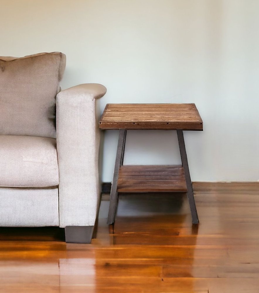 23" Sandy Black And Weathered Oak Manufactured Wood Rectangular End Table With Shelf