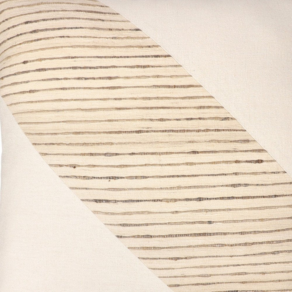 24" Beige and White Geometric Silk Throw Pillow With Embroidery