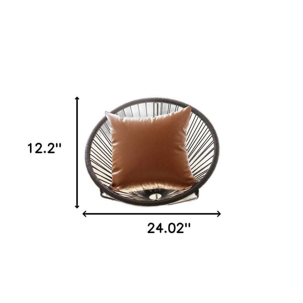 24" X 24" Brown Solid Color Handmade Faux Leather Throw Pillow Cover