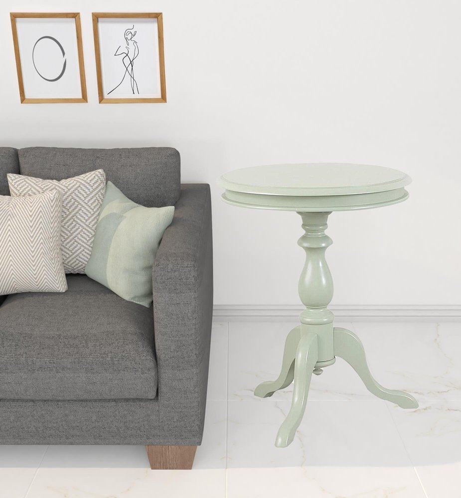 Show off your exquisite taste with this 25" antique ivory manufactured wood round end table. This table features quality construction from manufactured wood and an updated monotone color scheme with antiquedivory as the main color on both the top and the base. The purposefully distressed finish gives this table an authentically rustic feel. Side tables are a great way to flank your sofa, use as an accent next to your favorite chair, or can even be used bedside. This versatile table is a great accent for most any room. 25.25" H x 19.5" W x 19.5" D