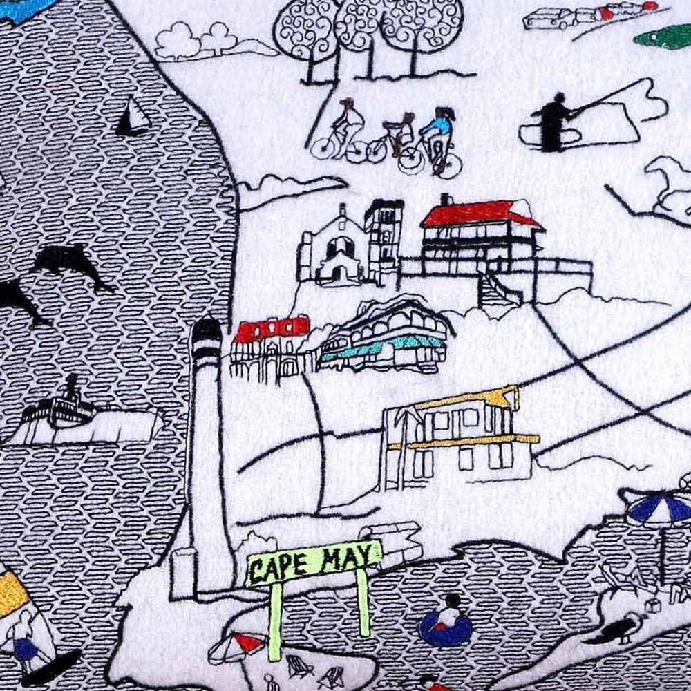 Showcase one of the most famous cities in the world with our White Jersey Shore Daytime Skyline Lumbar Decorative Pillow. This daytime view depicts New Jersey's famous coastline and includes many popular tourist vacation destinations. The gorgeous coastline features many famous landmarks stretching from Long branch down to Cape May, rendering in a modern whimsical way to bring this iconic coast to life. Made of a wool/nylon blend, this high quality stitched decorative pillow features black on white embroidered artwork mixed with pops of color that highlight important and recognizable icons from the infamous Jersey Shore. This pillow makes a great gift, decorative accent and conversation piece. 14-inch H x 25-inch W x 4-inch D