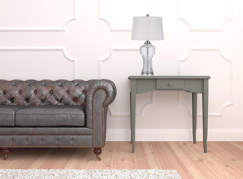 Bring of level of elegance and freshness to your space with this high quality 26" clear glass table lamp with white empire shade. The base of this lamp is made of glass finished in a clear tone. The white empire fabric shade is finishes this piece off nicely and symmetrically This standard table lamp is designed to provide general lighting to the area. Use this lamp anywhere and elevate the look of the whole space. The perfect lamp to create just the right natural and soothing light in your space. 26" H x 14" W x 14" D
