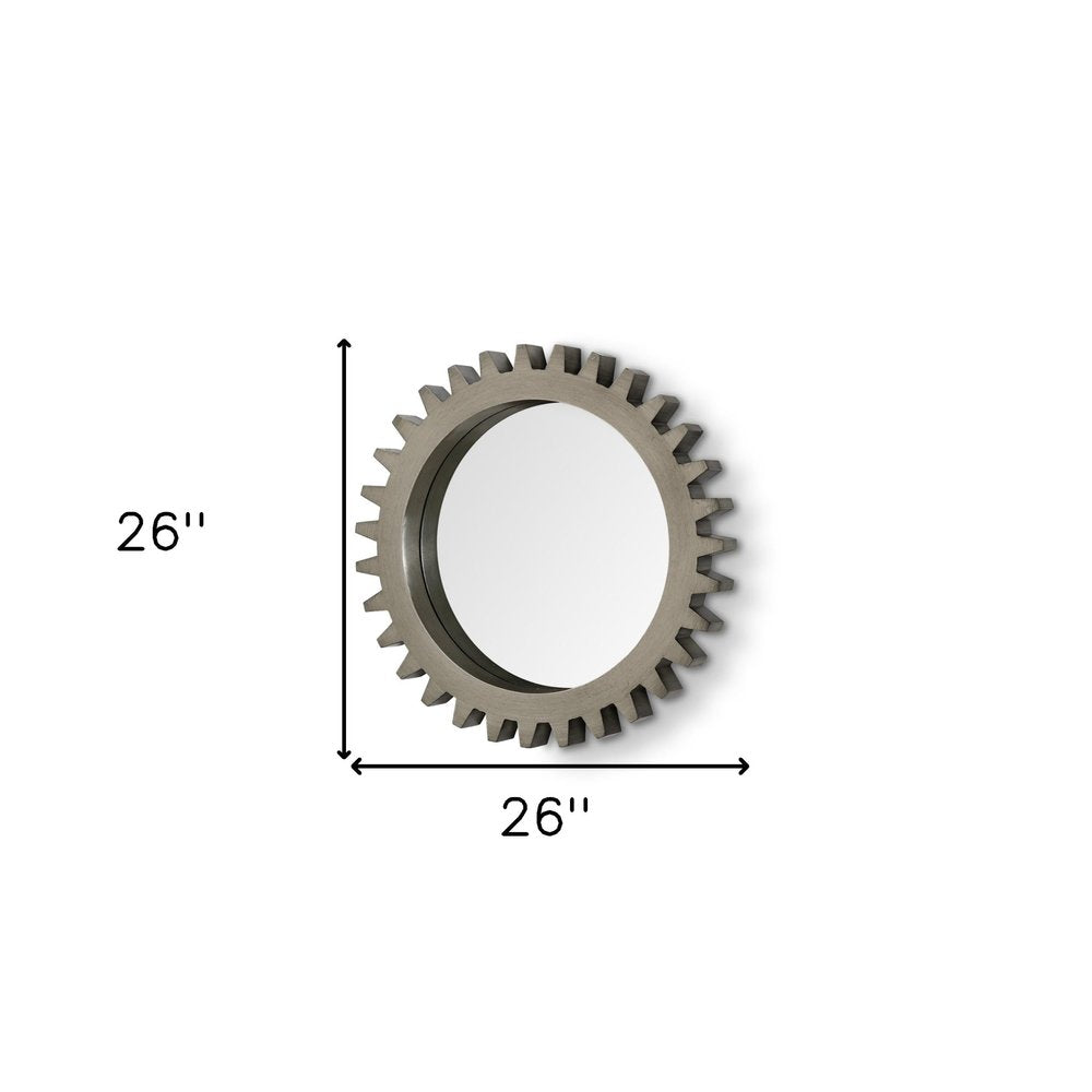 Add a touch of sunshine to any space in your home with this 26-inch gray abstract wood framed accent mirror. The inlaid frame crafted of wood and finished with silver hue, creating an elegant appeal. Framed with wood, this mirror will bring practical style and fashionable design to your space. Its industrial style makes this mirror a favorite for bringing some flair to your decor. This mirror will be a great useful addition to your home but will also help elevate the space in the room. 26-inch h x 26-inch w x 4-inch d