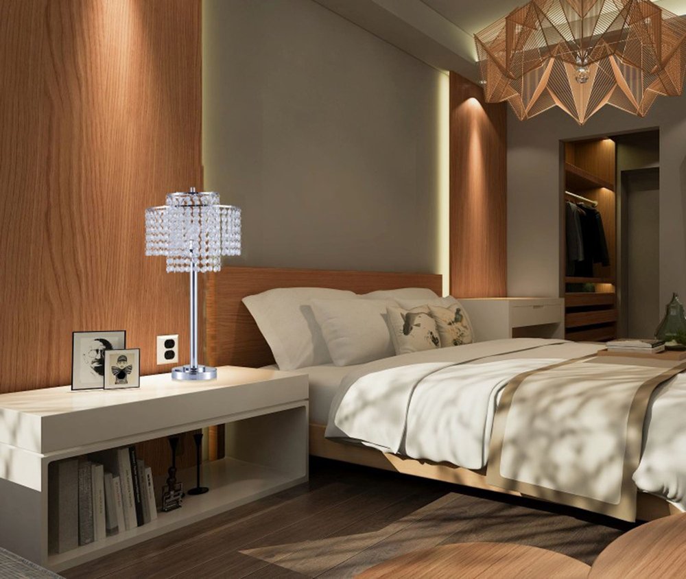 This 26" silver glam two tier chandelier USB table lamp is the perfect combination of design and function mixed with glamorous good looks. The lamp is made of sturdy metal and features a silver color with layers of faux crystal hanging accents that give this lamp a super stylish and lux look. The light that this lamp throws is soft and warm to elevate the look of most any space in your home. It is perfect for virtually any decor. 26" H x 12.5" W x 12.5" D