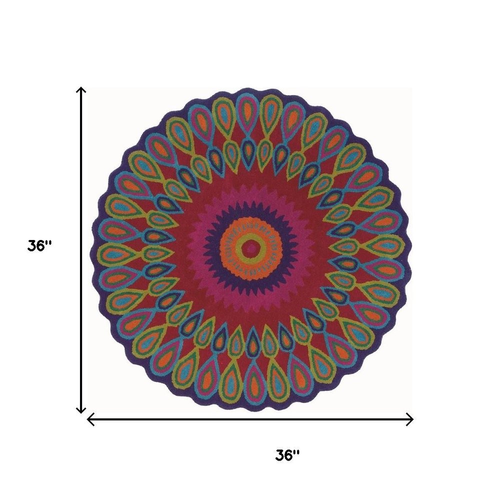 Add great coloration and comfortable texture to your space with this 3-foot pink wool hand tufted round rug. Crafted by skilled artisans, this hand tufted rug is genuine and unique. No two will be exactly alike. Rugs are a great way to showcase your style, hide imperfections, warm your home and reduce noise. This smaller sized, traditional styled rug is just what you need for your walkway, bedside, in front of door, cabinet, refrigerator, or chair. 36-inch h x 36-inch w x 0.5-inch d.