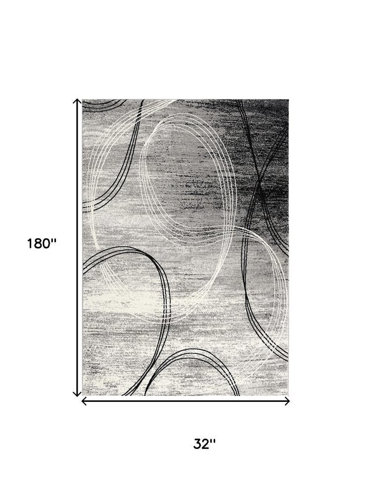 Add some artistry to your room with this 15-foot gray and ivory abstract shag runner rug. Ideal for spaces with kids and pets, this rug is stain resistant to help repel dirt and spilled liquids. Built to last, this rug crafted from olefin fibers is known for its durability and long lasting appeal. Rugs are a great way to showcase your style, hide imperfections, warm your home and reduce noise. This rectangular shaped rug features a abstract design that will add a functional and decorative accent to your space. The retro shag construction of this luxurious rug will provide a soft and comfortable barrier to color tile and hardwood floors. This modern style runner makes a great accent for the hallway, in front of cabinets, in the laundry room, or any other space you need a narrow and long rug. 32-inch h x 180-inch w x 0.8-inch d.