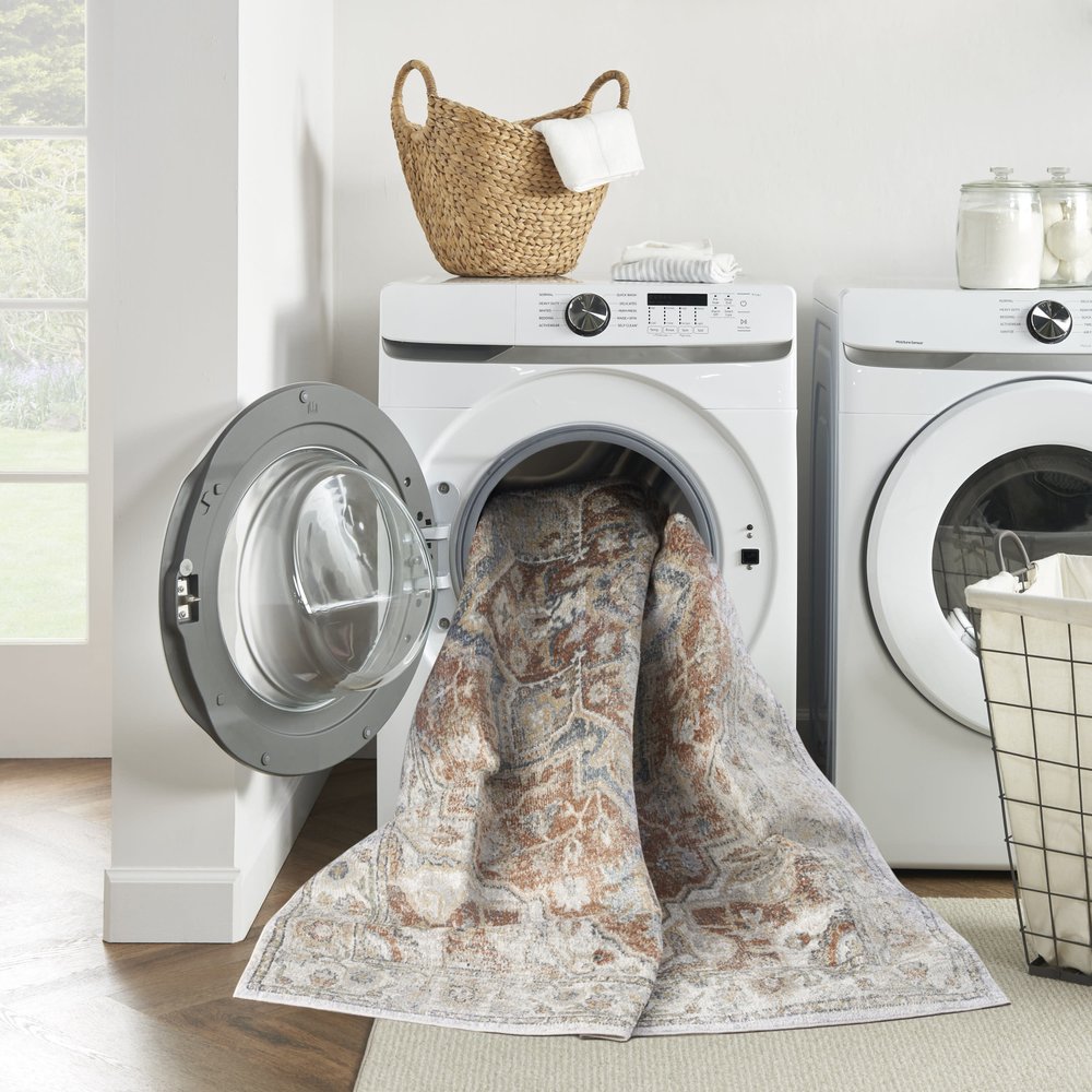 Add some artistry to your room with this 3' x 5' gold oriental power loom washable area rug. This rectangle shaped rug features a oriental design in gold to give it visual interest. A classic shape marries with good looking design for your space This superior Turkish rug represents the highest quality and is built to last. Place this area rug against a hardwood or tile floor and it will enliven your living space with style and sophistication. .25" H x 39.00" W x 60.00" D