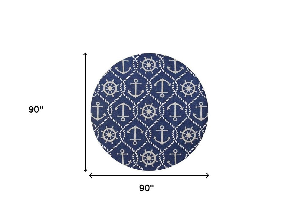 3' X 5' Navy Blue Gold And White Nautical Handmade Indoor Outdoor Area Rug