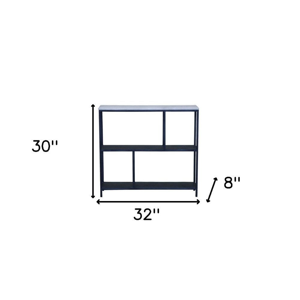 30" Black and White Iron Three Tier Geometric Bookcase