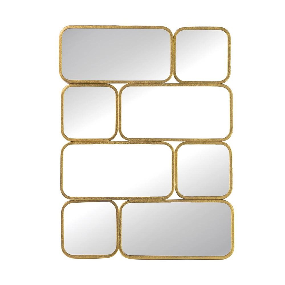 Add a touch of sunshine to any space in your home with this 32-inch gold iron framed accent mirror. This mirror has a rectangle shape providing the most magnificent reflections of light and color. This frame works nicely with the full-bodied mirror in the middle. Due to its high quality construction, it will last a lifetime. This mirror has the perfect length to place against your wall and will match all aesthetic. 32-inch H x 24-inch W x 2.4-inch D