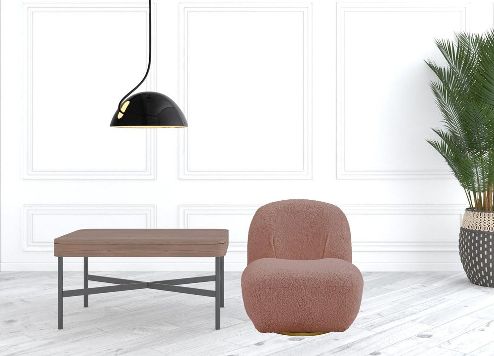 Unique and decorative, this 32-inch pink and brown sherpa swivel slipper chair will leave a lasting impression. Built to last this slipper chair is finished in solid pink sherpa to give your room a great update. The sturdy inner frame is built with high quality manufactured wood, featuring a tight back that is accented with soft and comfortable cushioning. A swivel feature allows this chair to turn, adding versatility to your seating. 27-inch h x 32-inch w x 27-inch d.