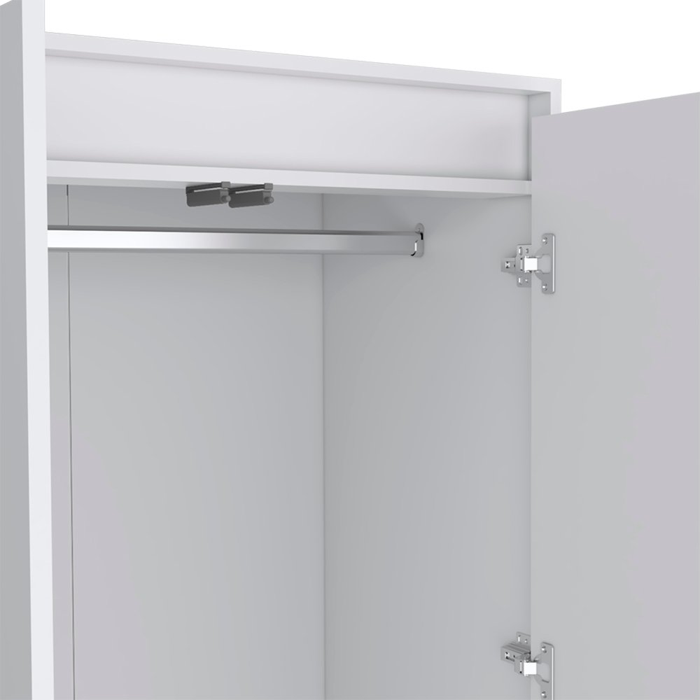 This 32-inch white two drawer combo dresser is a practical and good looking accent for your bedroom storage and organizational needs. Versatile in use, this combo dresser is equipped with both drawers and doors for all your storage needs. Its a high quality piece, made from high grade manufactured wood. The white coloration of this piece is neutral and will blend easily with most any decor. 70.87-inch H x 31.50-inch W x 20.47-inch D