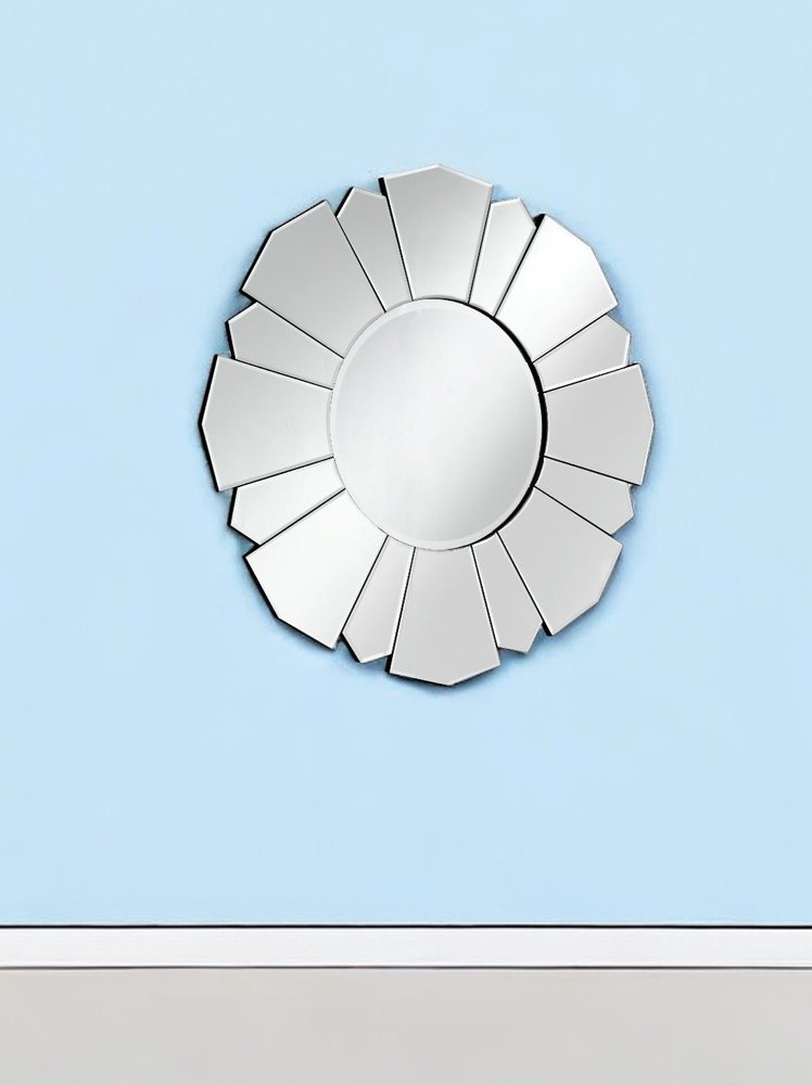 The elegantly crafted 33-inch clear abstract unframed accent mirror is what you need to add finishing touch to your decor. The abstract shaped mirror adds a nice touch of depth and texture and also makes it very practical. The unique design makes this stylish frameless mirror stand out in any decor. Its modern style making this the perfect versatile accent piece for most any decor. Its both exceptional and tasteful, and its tough as well. On its own or in multiples, this mirror is a perfect accent piece for an entryway, bathroom, bedroom or any room in your home. 32.7-inch H x 32.7-inch W x 0.7-inch D