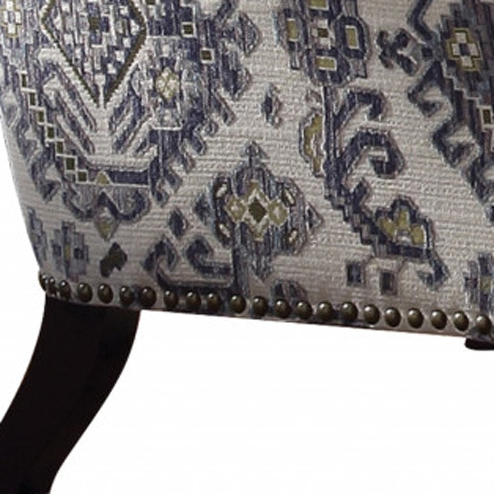 This 34-inch light gray and black fabric abstract tufted arm chair and toss pillow is the perfect decorative yet functional accessory for your home. Built to last this arm chair is upholstered in a beautiful light gray abstract patterned fabric to give your room a modern and fresh update. Giving the chair stability and structure, the inner frame is constructed with high quality manufactured wood, includes comfy armrests, and features a fixed back that comes complete with soft and comfortable cushioning. The tufted cushions add fine designer detailing. This chair includes high end detailing such as nailhead trim to wow you and your guests. Comes complete with a decorative toss pillow to give the chair the perfect accent. 37-inch h x 34-inch w x 37-inch d.