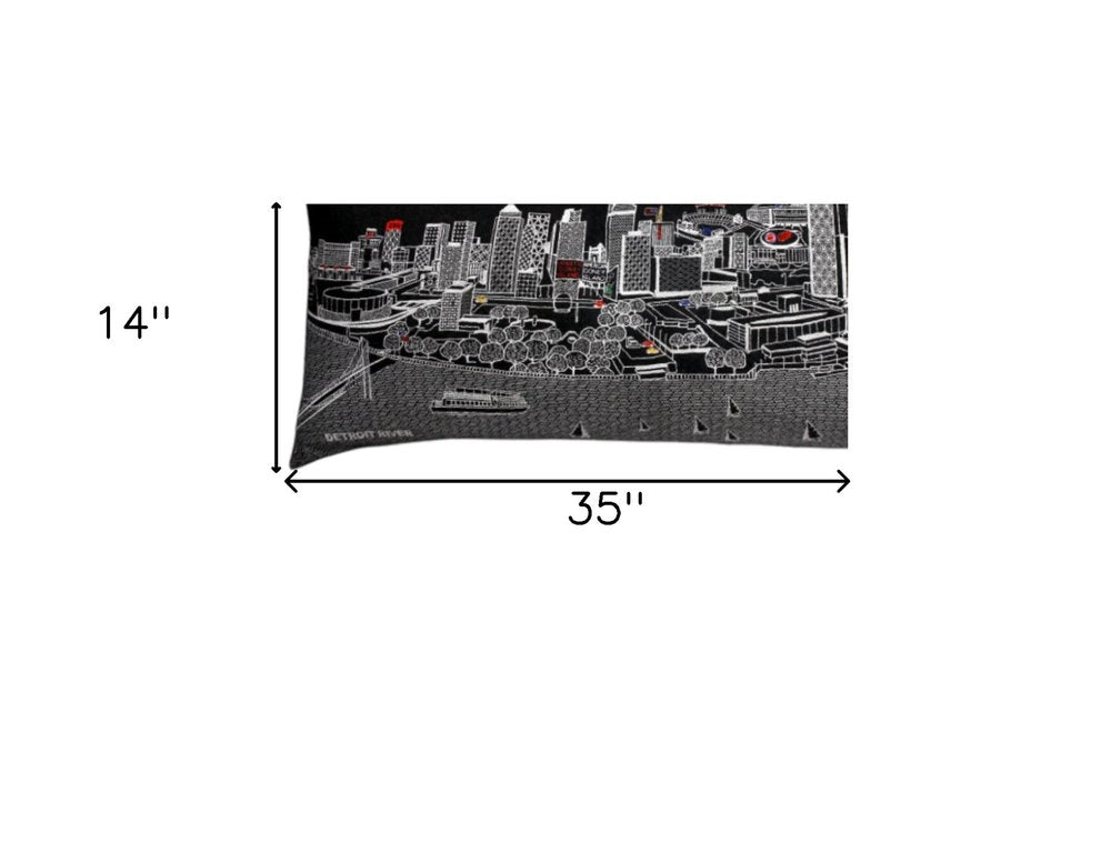 14" X 35" Black Gray and White Hometown Pride Wool Lumbar Throw Pillow