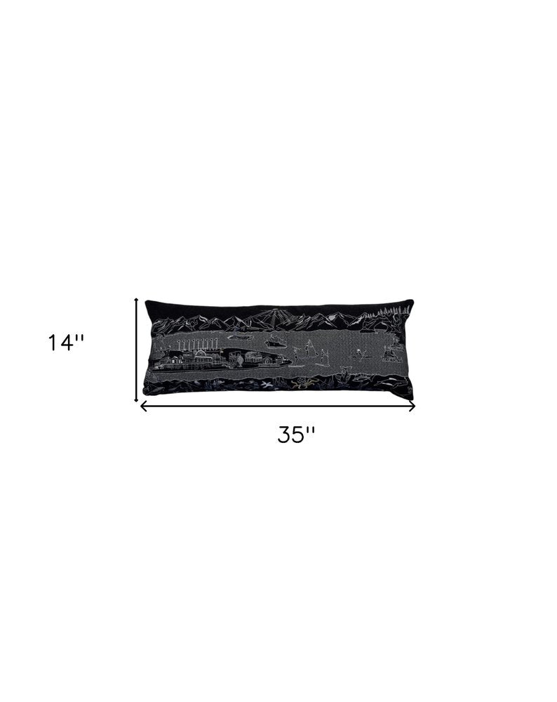 14" X 35" Black Gray and White Hometown Pride Wool Lumbar Throw Pillow