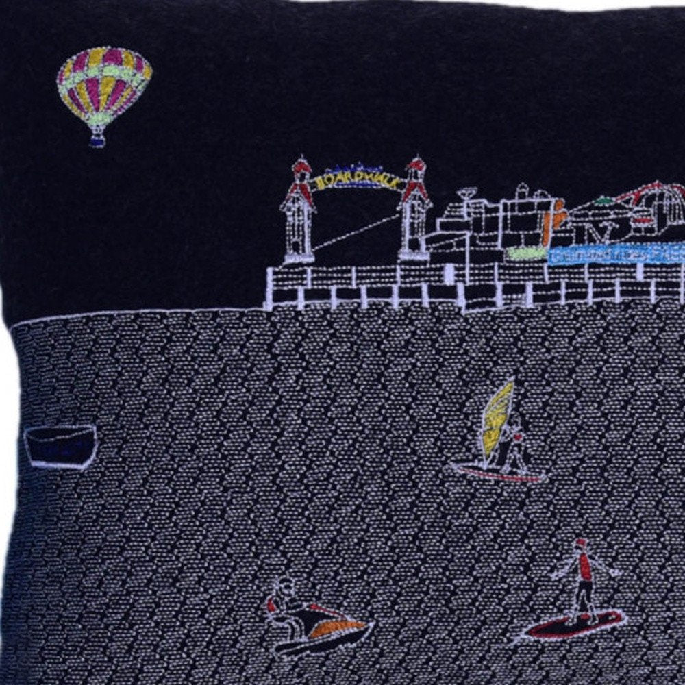 14" X 35" Black Gray and White Hometown Pride Wool Lumbar Throw Pillow