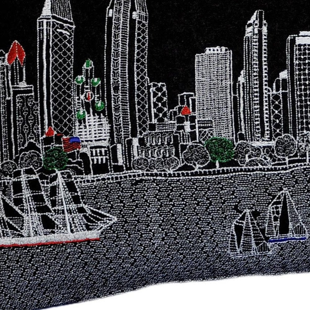 14" X 35" Black Gray and White Hometown Pride Wool Lumbar Throw Pillow