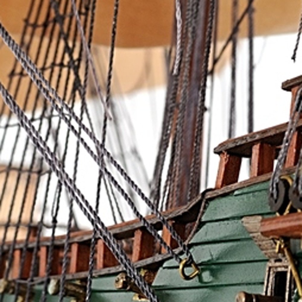 This 35-inch wood brown solid wood hand painted model boat tabletop sculpture will add a beautiful decorative accent to your decor. This charming decorative accent is expertly made of high grade solid wood in a wood brown coloration. This replica makes a great tabletop accent for your coffee table, desk, bookshelf, dresser or mantle. A perfect decorative addition for anyone who loves nostalgia and vintage style models and replicas. Great to use on its own or mix with other decorations for the perfect look. 35-inch H x 11-inch W x 37-inch D