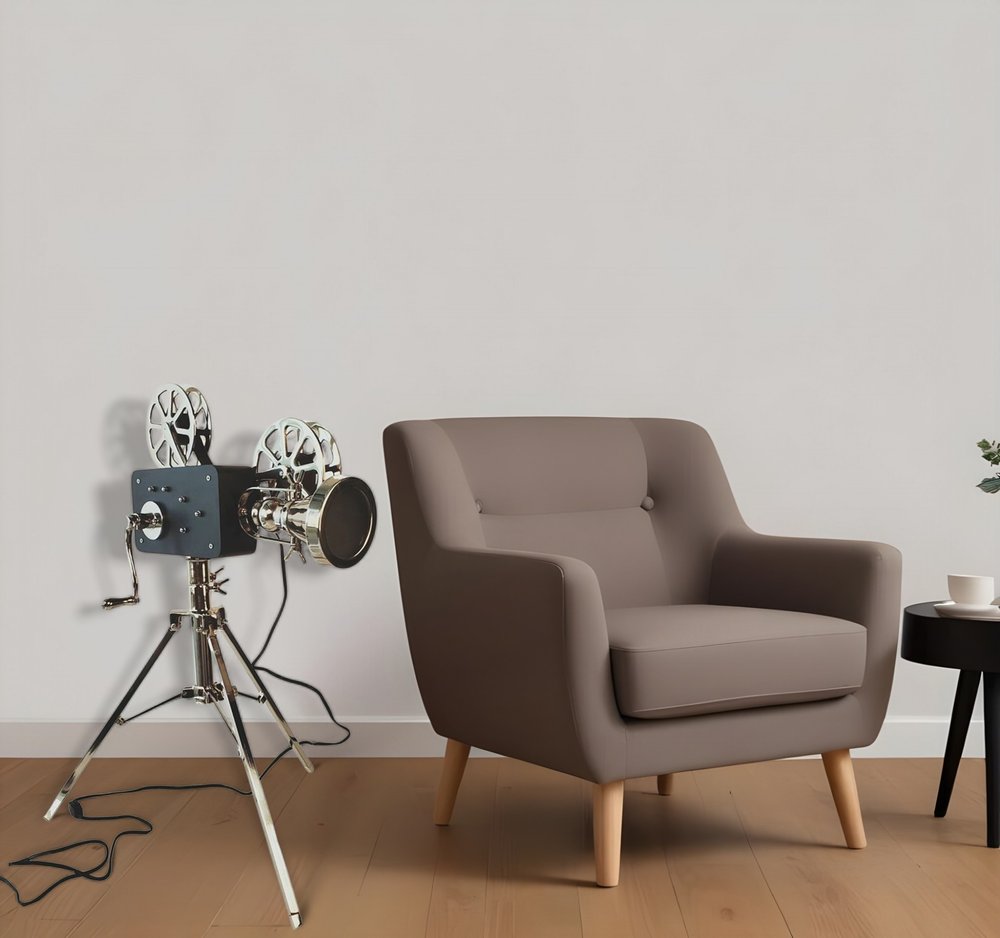 This 36-inch black and silver tripod floor lamp with metal novelty shade is a great way to add some brightness to any corner of your home. This good looking lamp includes a metal novelty shaped shade. A sturdy three leg base gives this tripod style floor lamp a designer style that leans towards modern and industrial for a unique and stylish look. High quality design makes this a great lamp for not only lighting, but accenting a room with style. Bring some lite and good vibes into your space with this updated and stylishly designed lamp. 36-inch h x 21-inch w x 20-inch d.
