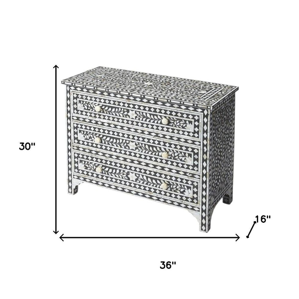 36" Black Manufactured Wood Three Drawer Chest