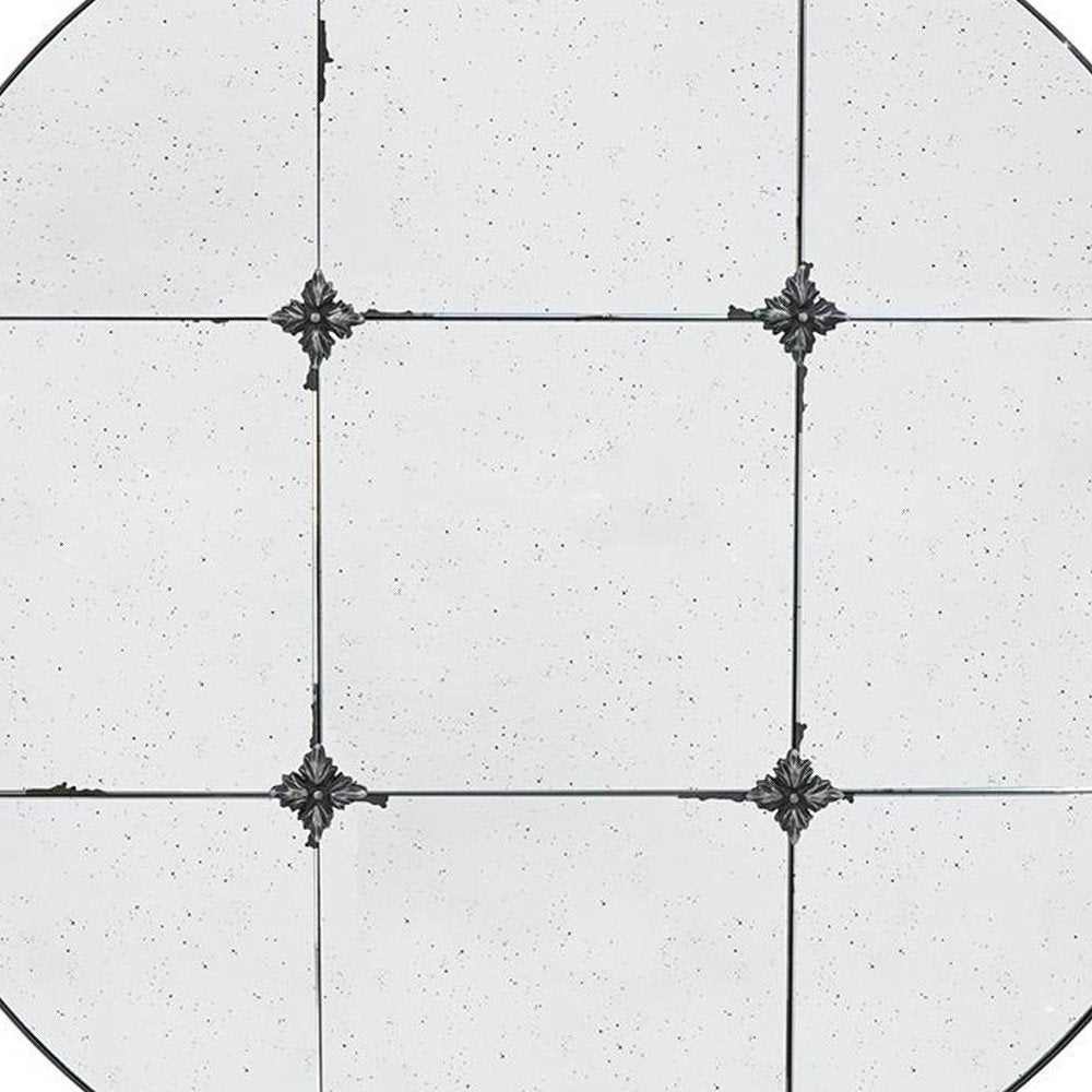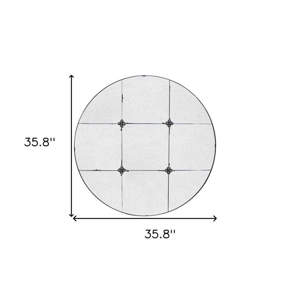 36" Black Round Iron Framed Antiqued Glass Accent Mirror