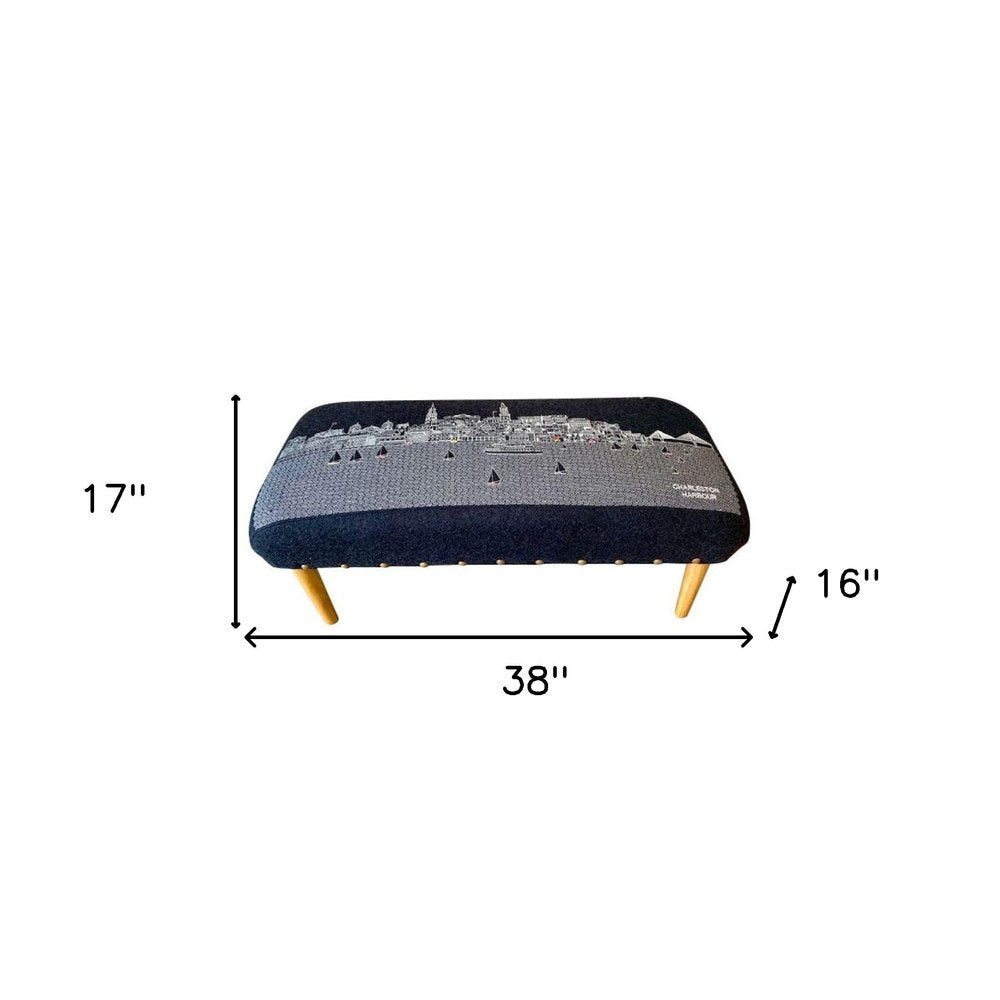 Optimize your space and add some charm to your room with the 38-inch gray wool and brown ottoman. Fine detailing such as nailhead trim give this ottoman a rich and elegant look ottomans are multi-functional additions to your space that add fashion and practical value. Upholstered in soft, durable wool, it features a modern rectangular design that complements various decor styles. The sturdy brown legs offer stability while enhancing its overall aesthetic appeal, making it an ideal choice for any living area. 17-inch h x 38-inch w x 16-inch d.