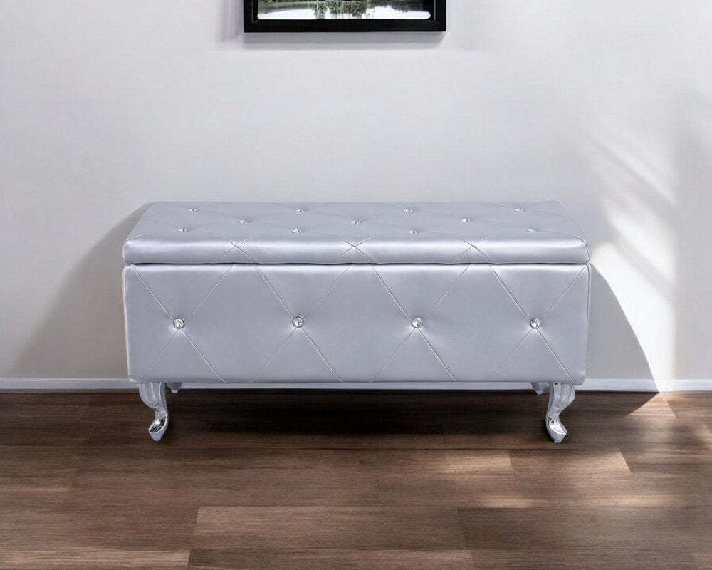 38" Silver Faux Leather Storage Bench With Flip Top