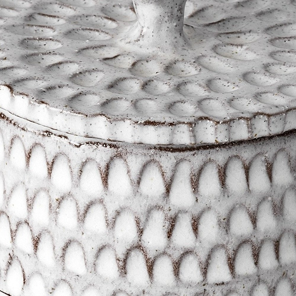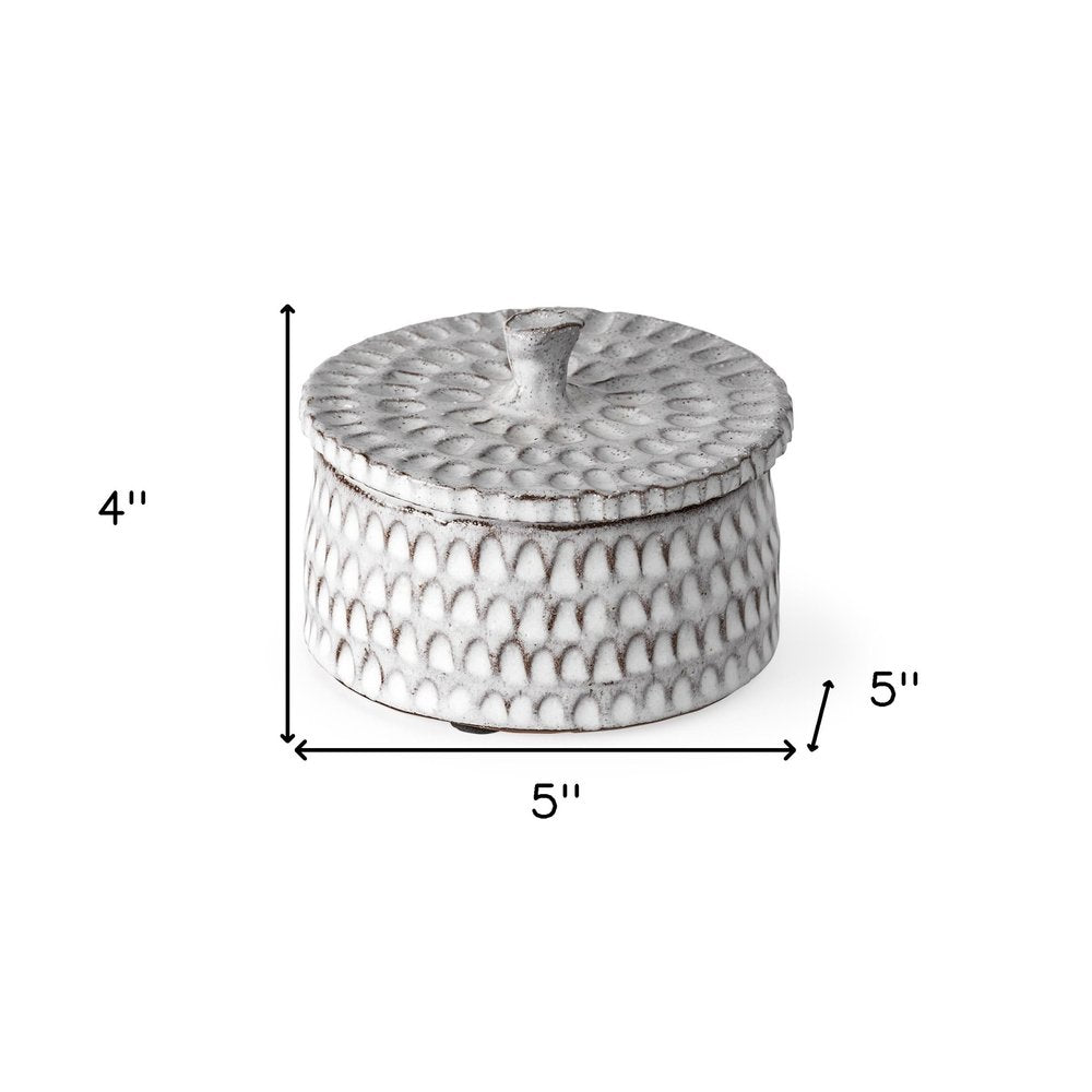 The 4-inch gray ceramic hand painted decorative keepsake box is the perfect decorative accessory for your home. This unique decorative object makes a great piece for your coffee table, desk, or bookshelf. Great to use on its own or mix with other decorations for the perfect look. 4-inch h x 5-inch w x 5-inch d.