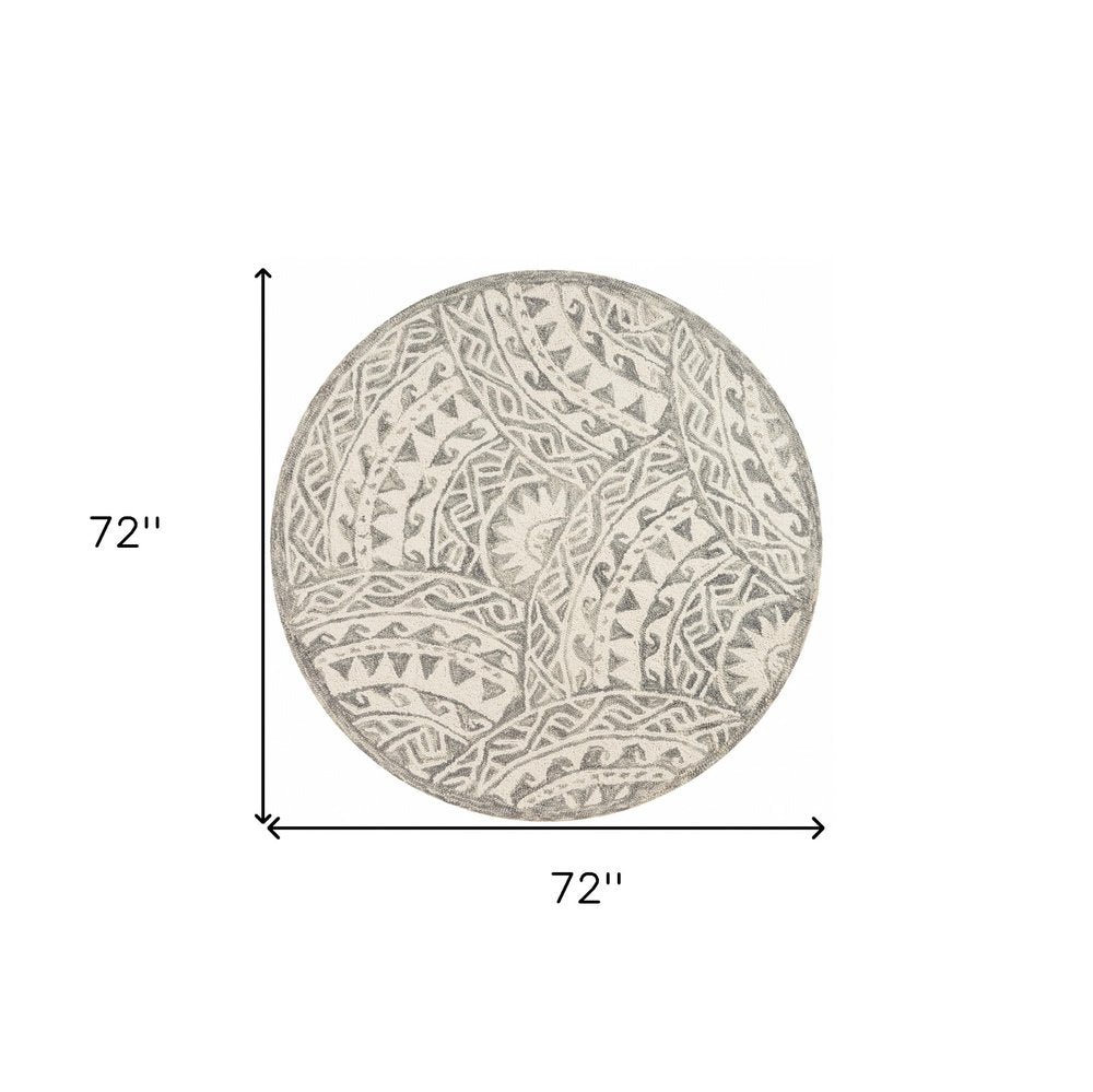 6' Gray Round Wool Geometric Hand Tufted Area Rug