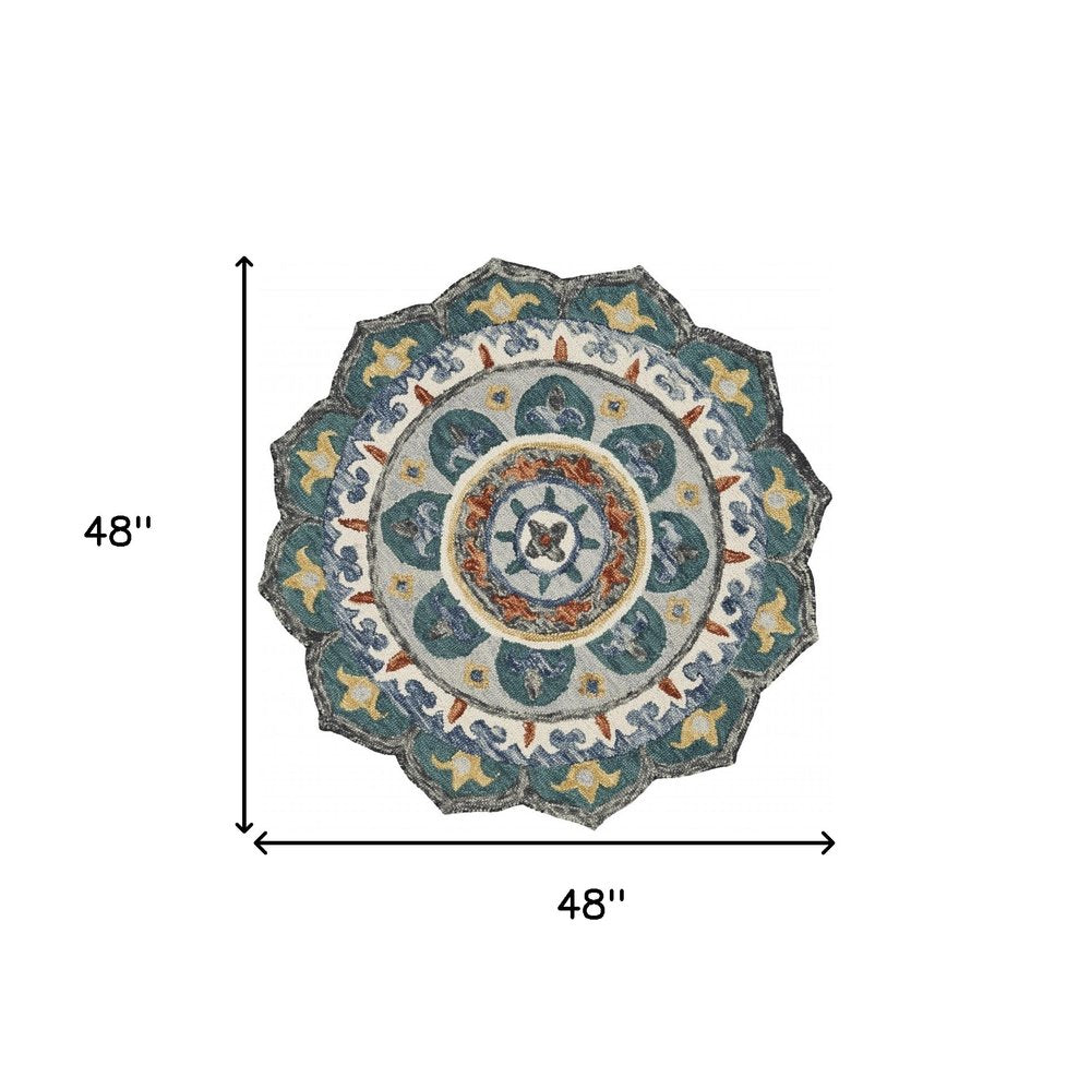 4' Green And Ivory Wool Hand Hooked Round Rug