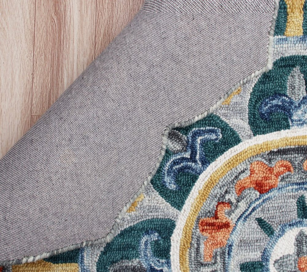 Resembling a freshly painted piece of artwork, this Round Teal Floral Mandala Area Rug will stand out in any interior setting and make the guests turn heads. The saturated shades of teal, blue, white, and pale yellow are flaunted in a beautifully designed floral mandala with petaled edges to make this piece even more captivating. Hand-tufted with 100% wool, which is naturally hardwearing and moisture-wicking and will last for years while regulating temperature in both cold and warm weather. The soft and medium pile construction adds to a luxurious surface texture for a cozy underfoot, making it a suitable option for areas with high foot traffic. The cool-toned hues of the spectrum are gorgeously presented in this area rug to spruce up any modern or traditional interior. 48”