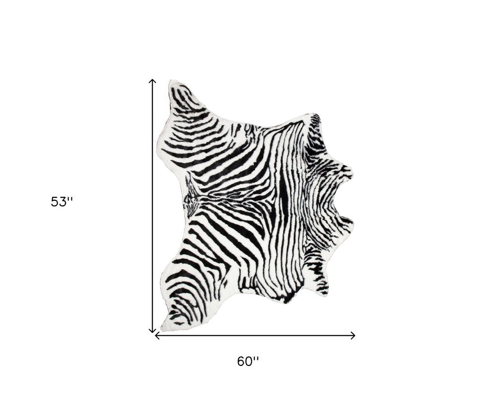 4' X 5' Black and White Faux Fur Printed Area Rug