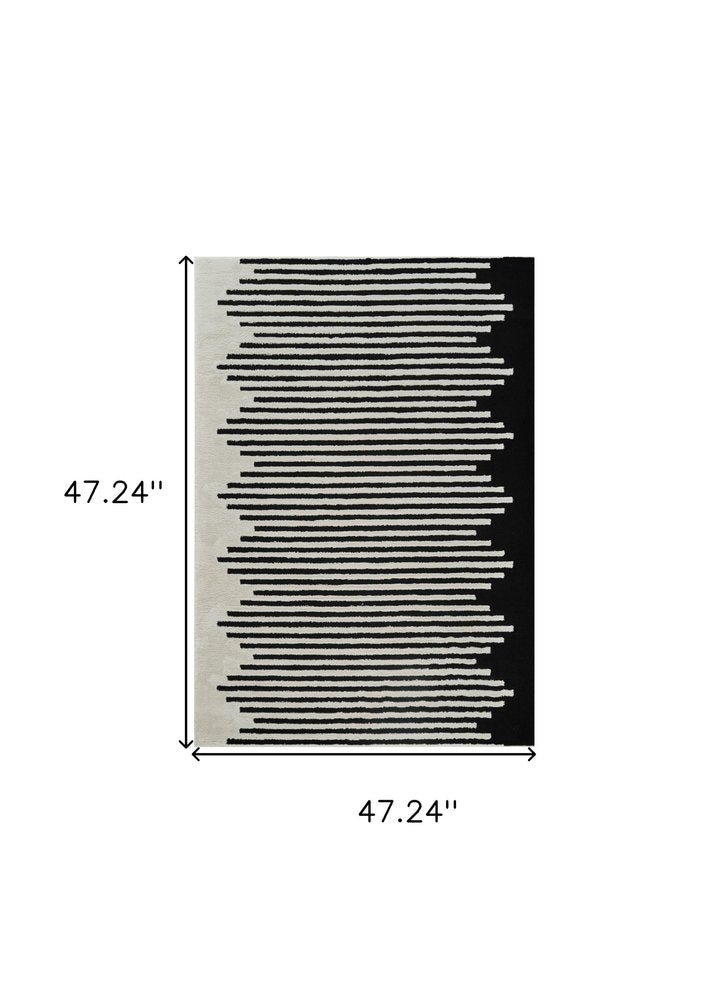 Add great coloration and comfortable texture to your space with this 4-foot x 6-foot cream and black abstract distressed area rug. This rectangle shaped rug features a abstract design in cream and black to give it visual interest. A classic shape marries with good looking design for your space ideal for spaces with kids and pets, this rug is stain resistant to help repel stains and spilled liquids. 47.24-inch H x 47.24-inch W x 0.75-inch D