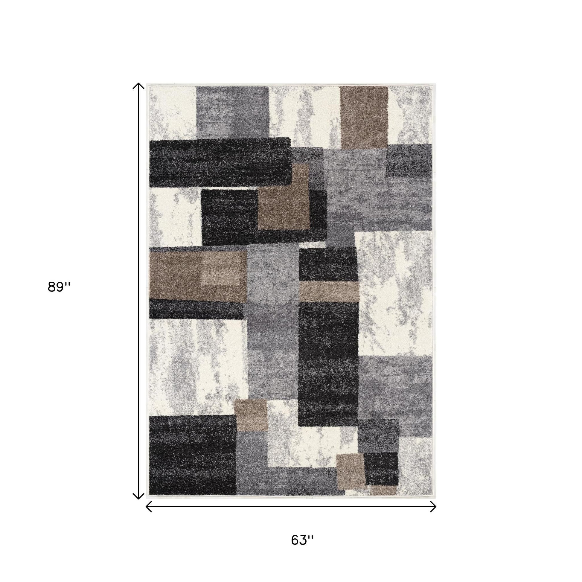 4' X 6' Gray Black and Brown Abstract Geometric Area Rug