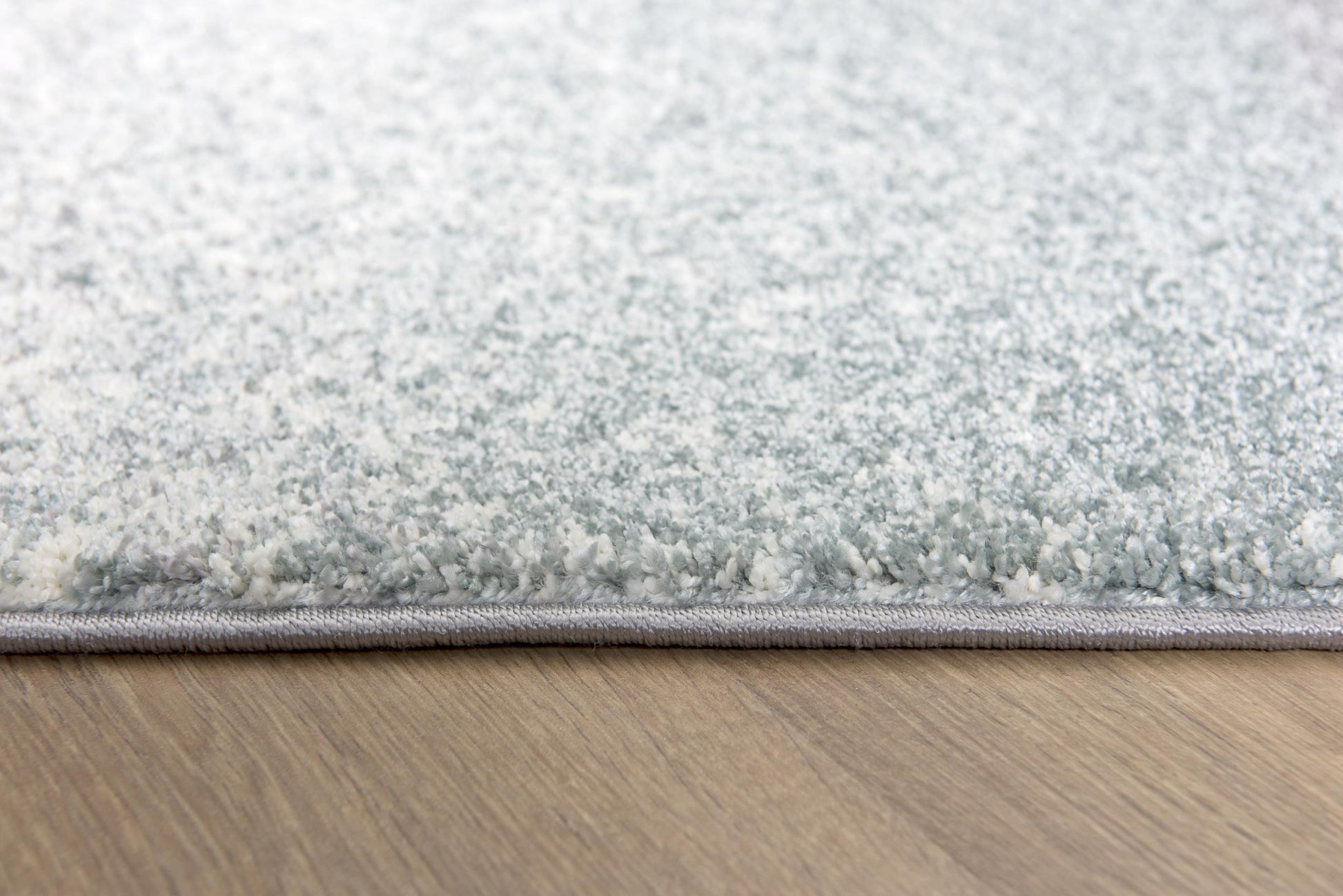 The shimmering glow of this Gray Modern Geometric Area Rug will uplift the ambiance of any contemporary setting and make a statement on its own. Showing off an elegant color combination, this rug features geometric blocks with a skillful smudge of charcoal black, trout gray, and hints of teal to accentuate a gleaming effect for visual appeal. This rug is made in Turkey with 100% twisted polypropylene material to ensure enhanced durability for years to come while resisting stains and spillage to keep its sheen for long even in areas with heavy foot traffic. Roll this stunning area rug in any part of your home and as light reflects from its surface, watch the entire space come alive in an instant. 126” x 93” x 0.8”