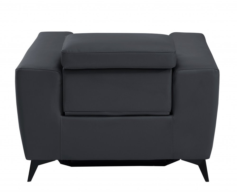 Kick back and relax in this 41" dark gray italian leather power recliner while you're reading a novel or watching your favorite TV show. Upholstered in high grade, italian leather, this chair will provide a soft and luxurious way for you to relax and rest. Whether you are starting your day, ending your day, or sneaking in a cat nap in between, this chair is a welcome addition to your space and self-care routine. Take relaxation to the next level with this comfy reclining chair. 31" H x 41.3" W x 43" D