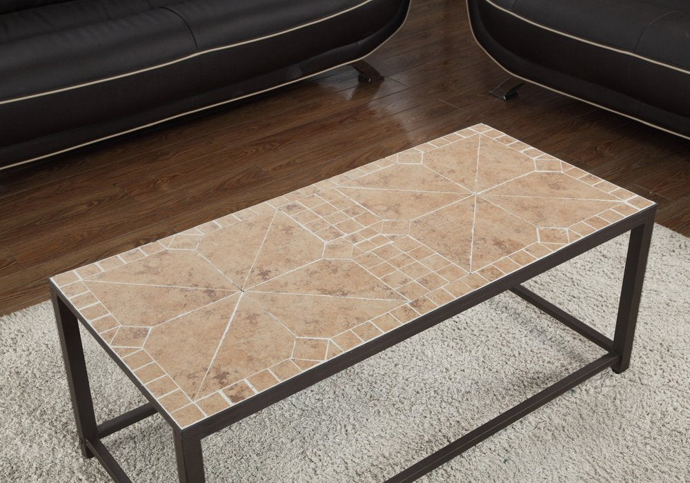 A brown coloration runs throughout this good looking metal and manufactured wood table. This rectangular table is an classic yet updated way to accent your room. If you're looking for something that can fit into a living area, bedroom, or office, this coffee table is for you. This coffee table is the sturdy, reliable and stylish answer to your living room needs. 17" H x 42" W x 20" D