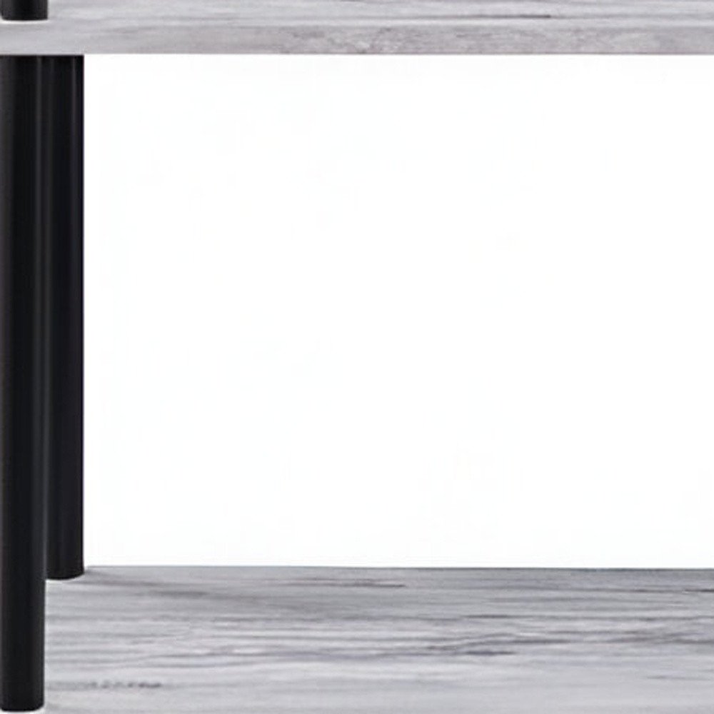 44" Antiqued White And Black Distressed Metal and Wood Four Tier Etagere Bookcase