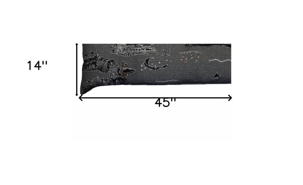 14" X 45" Black Gray and White Hometown Pride Wool Lumbar Throw Pillow
