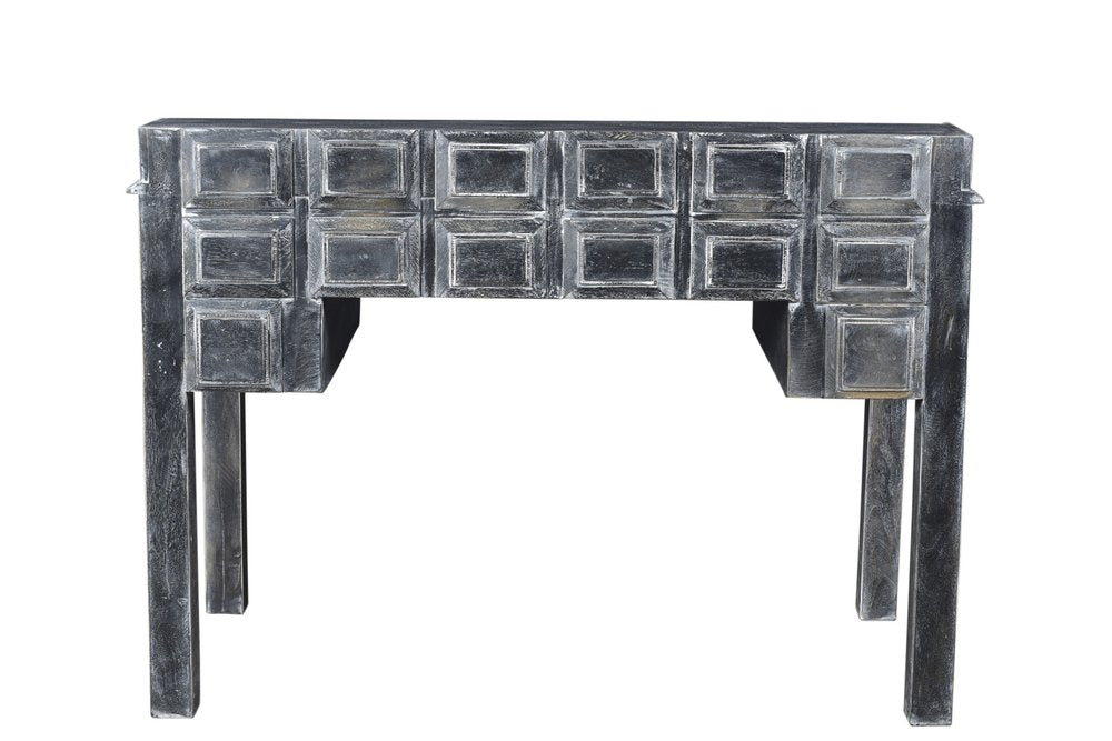 This 46-inch black solid wood writing desk with seven drawers will bring classic design and styling to your living room, home office or bedroom. With a classic shape and style, this well made rectangular desk is a stylish way to keep your office space looking good. Multiple drawers give this desk plenty of hidden storage for your office essentials. Built to last, this sturdy desk is designed for comfort and efficiency for years to come. 34-inch H x 46-inch W x 24-inch D