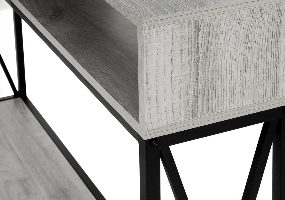 Transform your home with our elegant and versatile 47-inch gray and black frame console table with storage! Don't miss out on the perfect finishing touch for your home! This rectangular table is ideal for up against the wall, can free stand in a room, or sit behind the sofa perfectly. This table has a top made with gray manufactured wood that is known for durability and easy maintenance. Versatile in use, console tables can be used for a variety of purposes in a variety of rooms and settings. 30.5-inch H x 47.25-inch W x 9-inch D