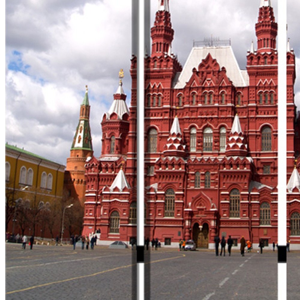 72" Red Blue And Ivory Canvas Folding Three Panel Screen Room Divider