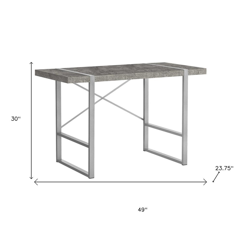 This 49-inch gray and silver computer desk will help to turn your office space into an executive suite. With a classic shape and style, this well made rectangular desk is a stylish way to keep your office space looking good. Built to last, this sturdy desk is designed for comfort and efficiency for years to come. 30-inch H x 49-inch W x 23.75-inch D