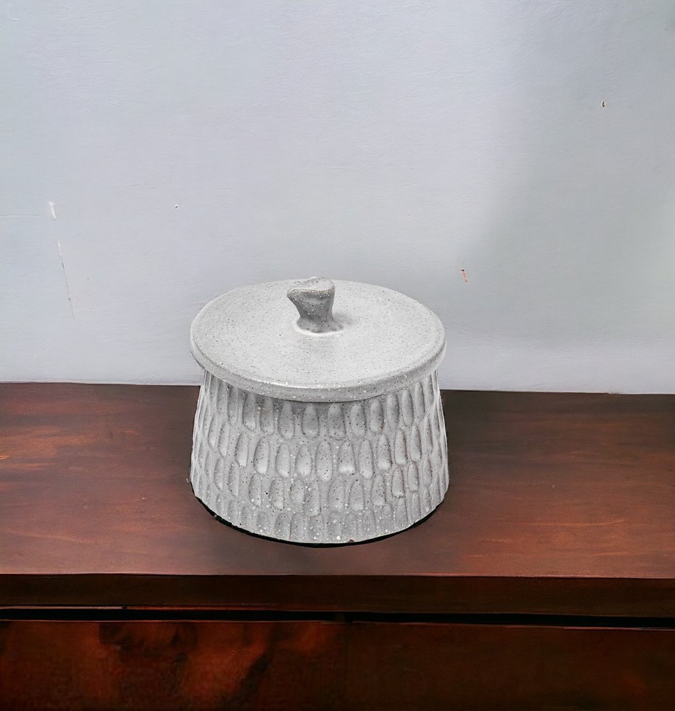 Keep your workspace neat and stylish with this 5-inch ceramic desk organizer in a serene gray hue. Crafted from high-quality ceramic, this coastal-inspired organizer adds a touch of elegant charm to your desk. Perfect for storing pens, pencils, paper clips, and more, it helps you stay organized and efficient throughout the day. The soothing gray color complements any decor scheme, while the durable material ensures long-lasting use. Transform your desk into a clutter-free zone with this chic organizer that combines functionality with a coastal aesthetic. Ideal for both home offices and corporate workspaces, it brings a sense of calm and order to your daily routine. 5-inch H x 5-inch W x 5-inch D