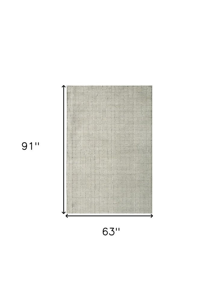 5' X 8' Beige and Black Checkered Power Loom Distressed Area Rug